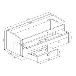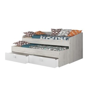 Funcional e prática, esta cama compacta foi pensada para otimizar o espaço, permitindo acomodar 2 colchões individuais. Uma solução inteligente para quartos com espaço reduzido, combinando conforto, arrumação e praticidade.