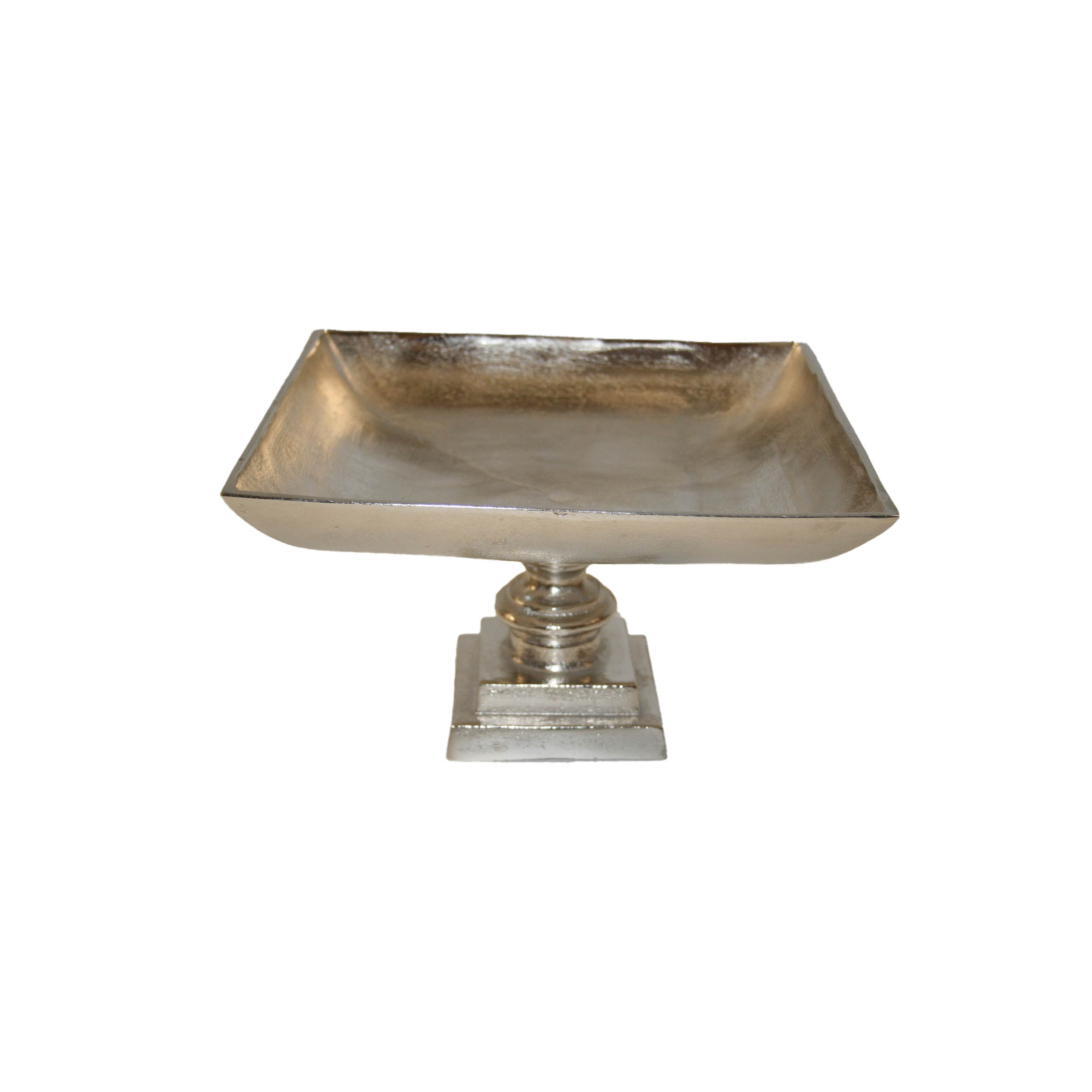 Centro de mesa com pé quadrado. Acabamento alumínio.