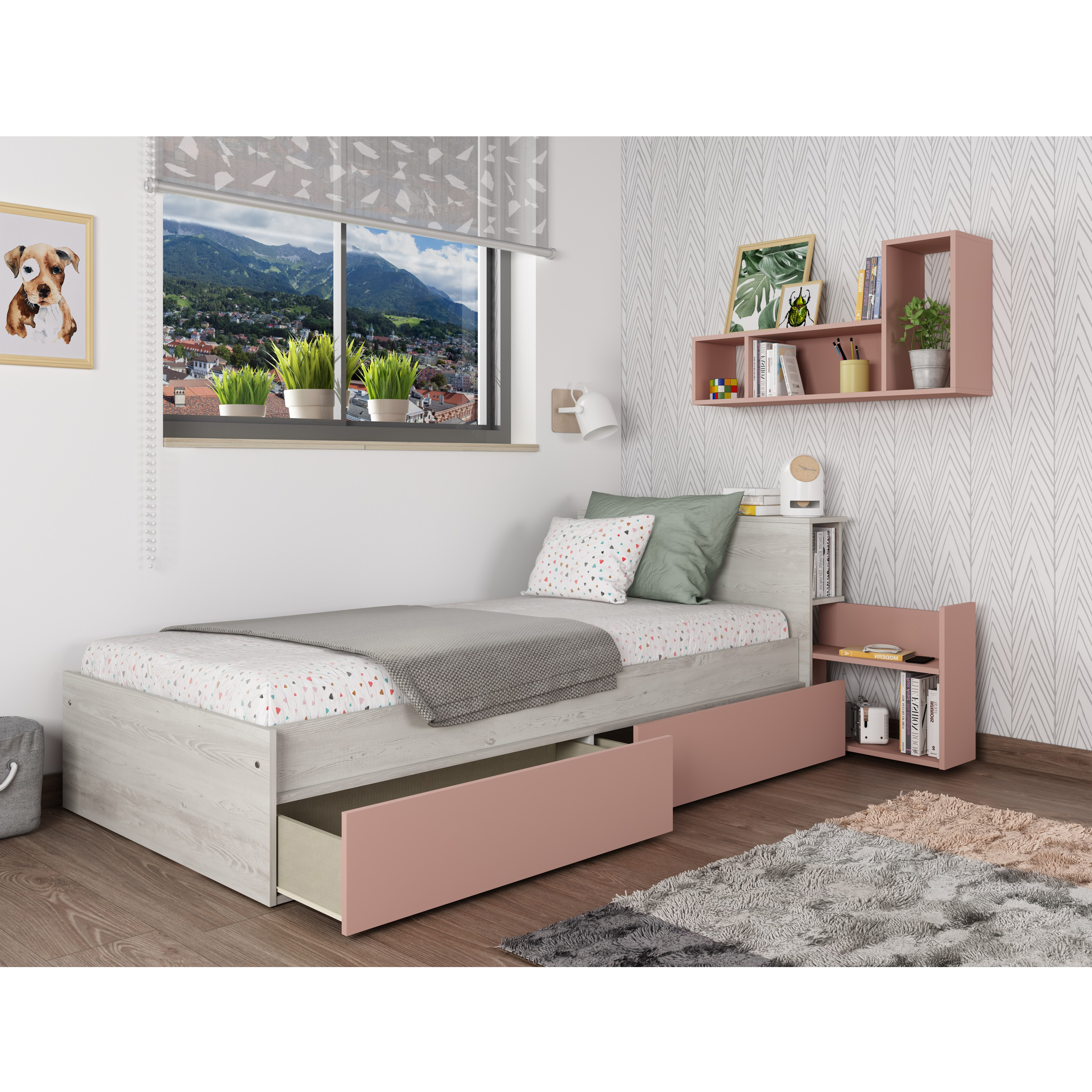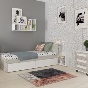 Cama adequada para colchão de 90×190, (não incluido). Necessita de estrado (não incluído).