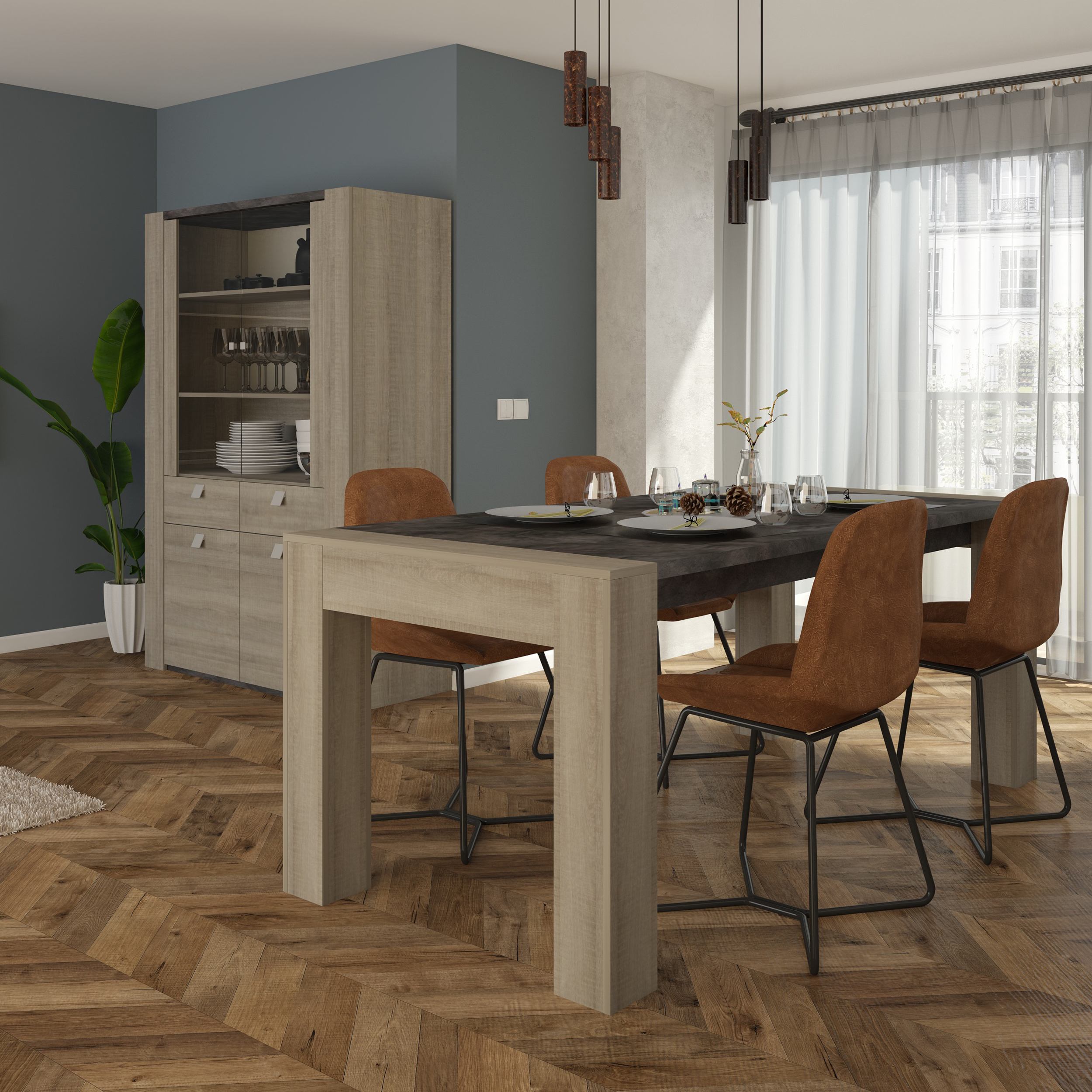 Fabricado em aglomerado de madeira revestido a melamina. A combinação de acabamentos em carvalho cinza e ardósia cria um equilíbrio sofisticado, perfeito para ambientes atuais.